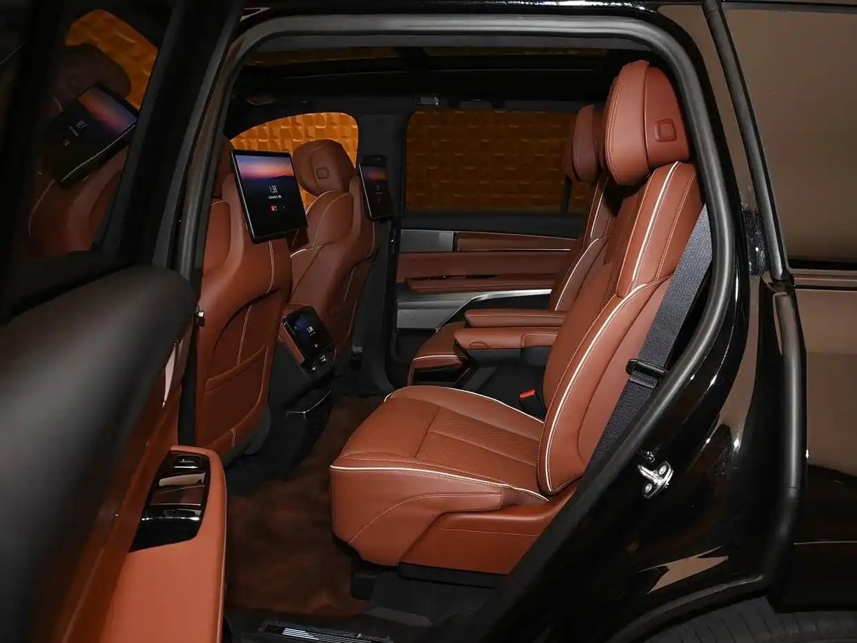 座椅方面,该车提供2+2+2的6座布局,车内空间特别广漠,前排座椅维合手加热/透风/推拿,第二排座椅维合手前后调整、靠背调整和腿托调整,除了后排空调出风口上方屏幕外,在靠背上还有两块文娱屏幕。