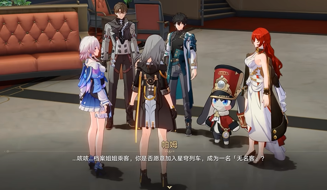 玩家在罗致主角后,是被三月七和丹恒捡回了列车,并阅历了一系列冒险后最终受邀加入了列车组,成为了别称“征战者”。