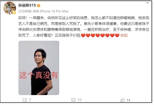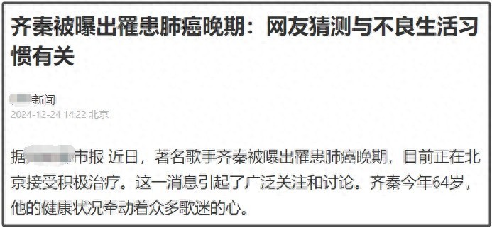 当天有音书称王人秦罹患肺癌晚期,引起网友眷注。
