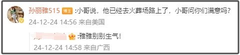 孙丽雅还在批驳区留言:小哥说,他照旧去火化场路上了,小哥问你们好意思瞻念吗?